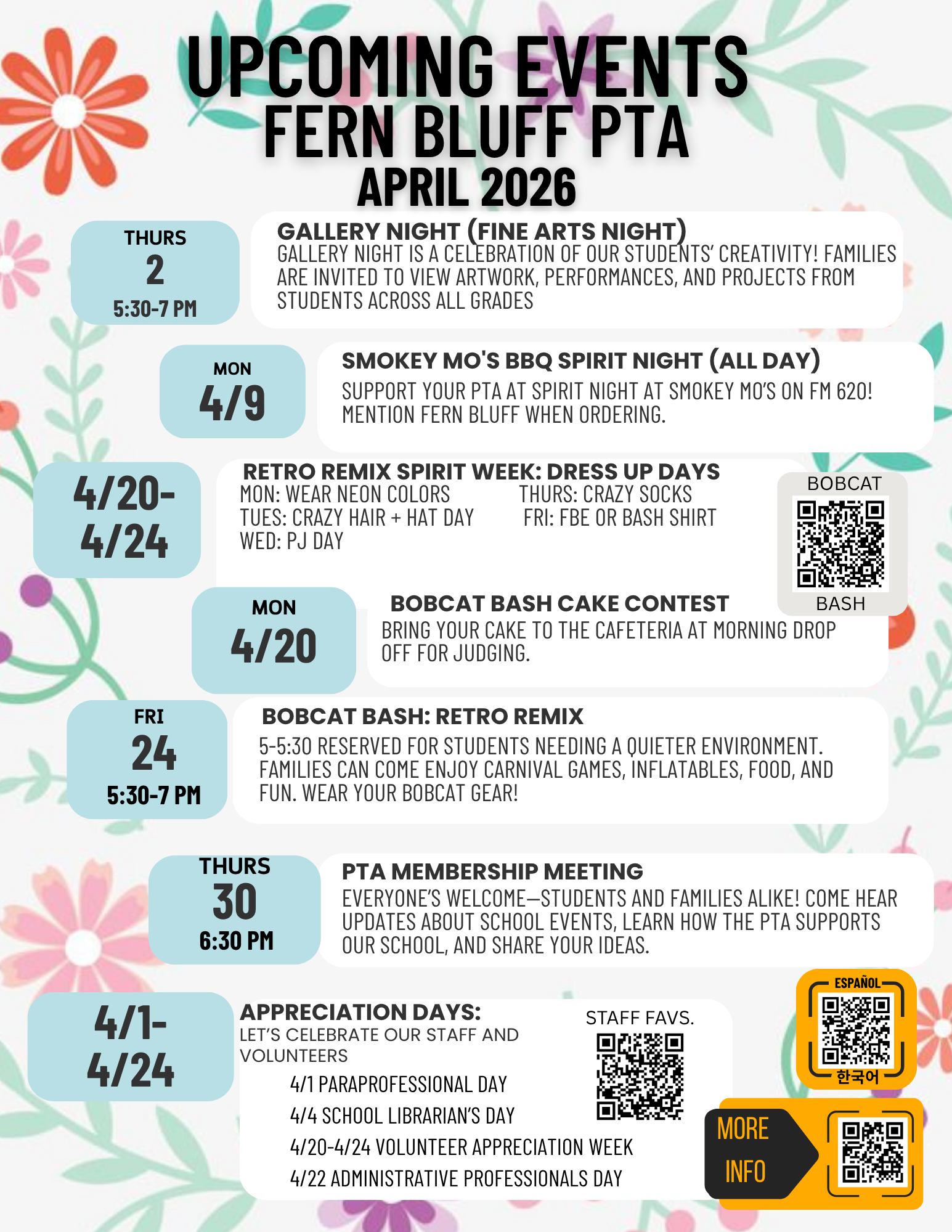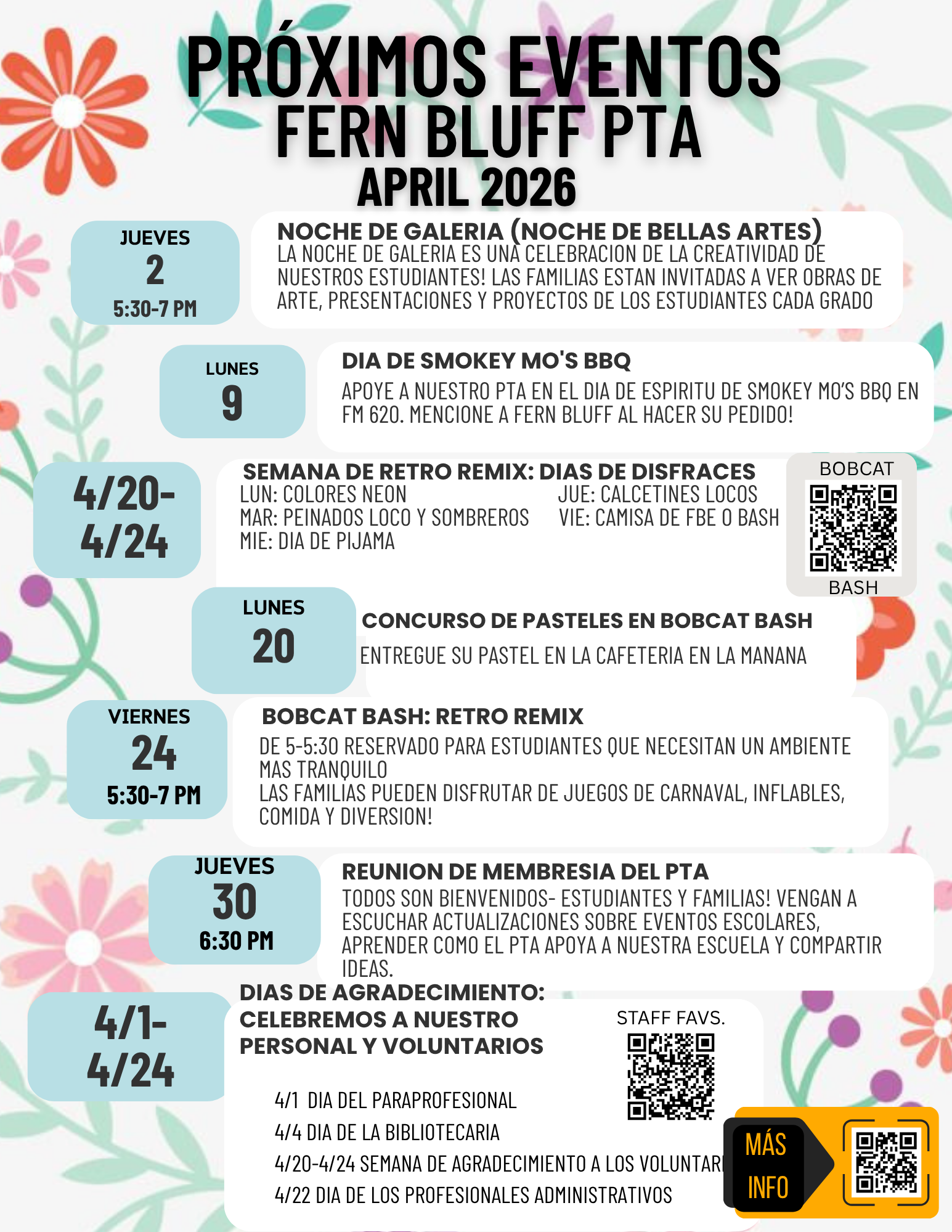 Folleto mensual que destaca algunos de los eventos que se están celebrando en nuestra comunidad escolar.